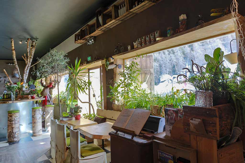 L'ambiance: une vingtaine de couverts où se retrouvent des habitués, des copains et des amoureux de la nature. L'équipe: une poignée de jeunes, un mélange de bonté à la sauce « new age » qui a pour seul mérite de vous accueillir et de vous servir pendant votre séjour. Seul défaut... il vaut mieux réserver votre table. AUCUN ACCES POUR LES PERSONNES HANDICAPEES